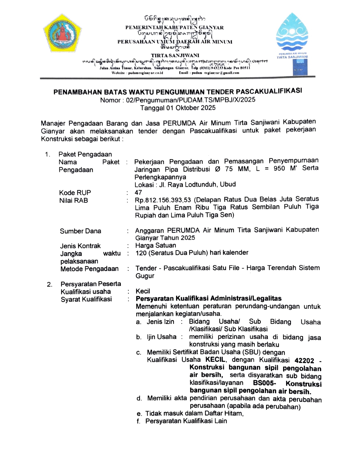 PENAMBAHAN BATAS WAKTU PENGUMUMAN TENDER PASCAKUALIFIKASI