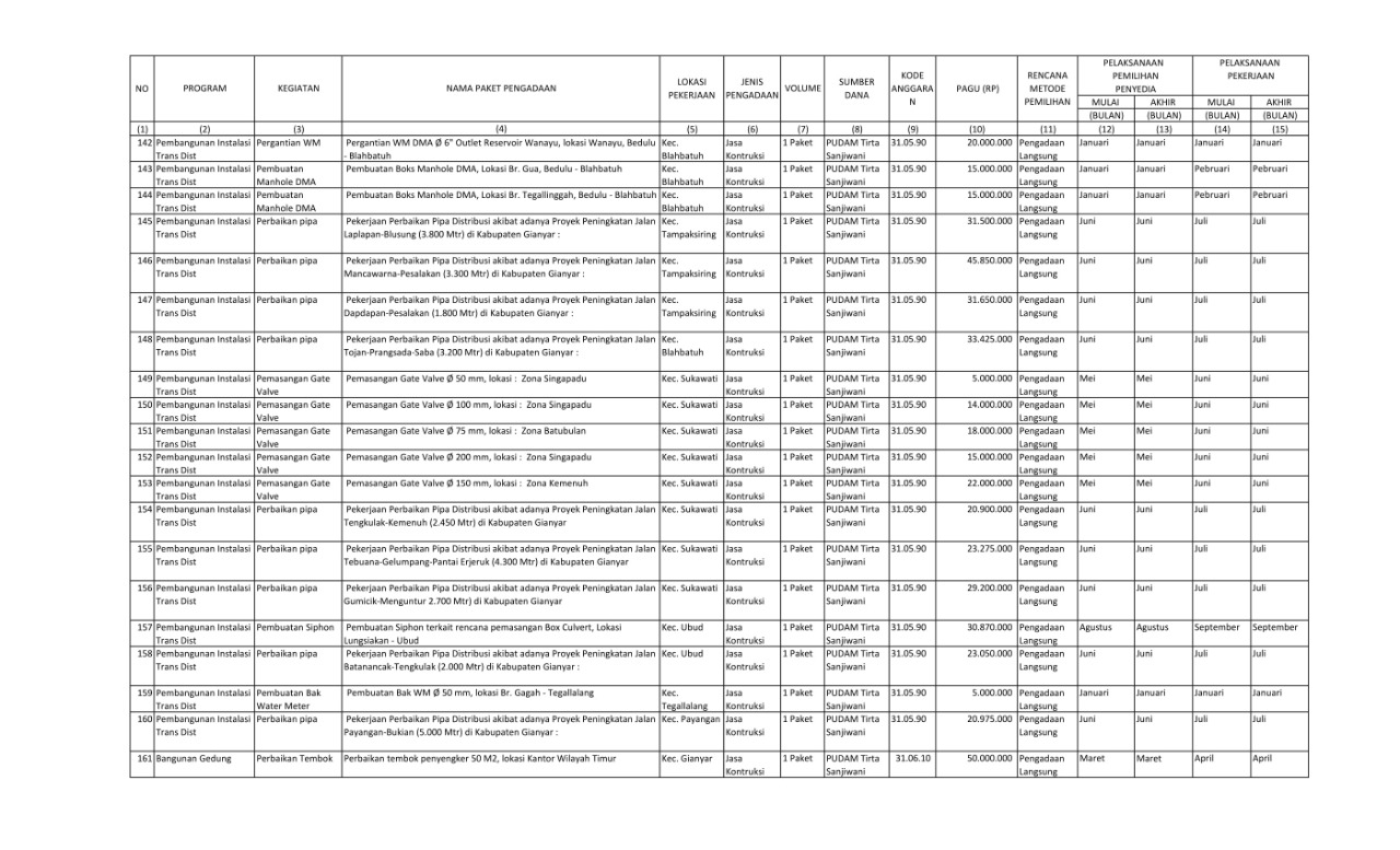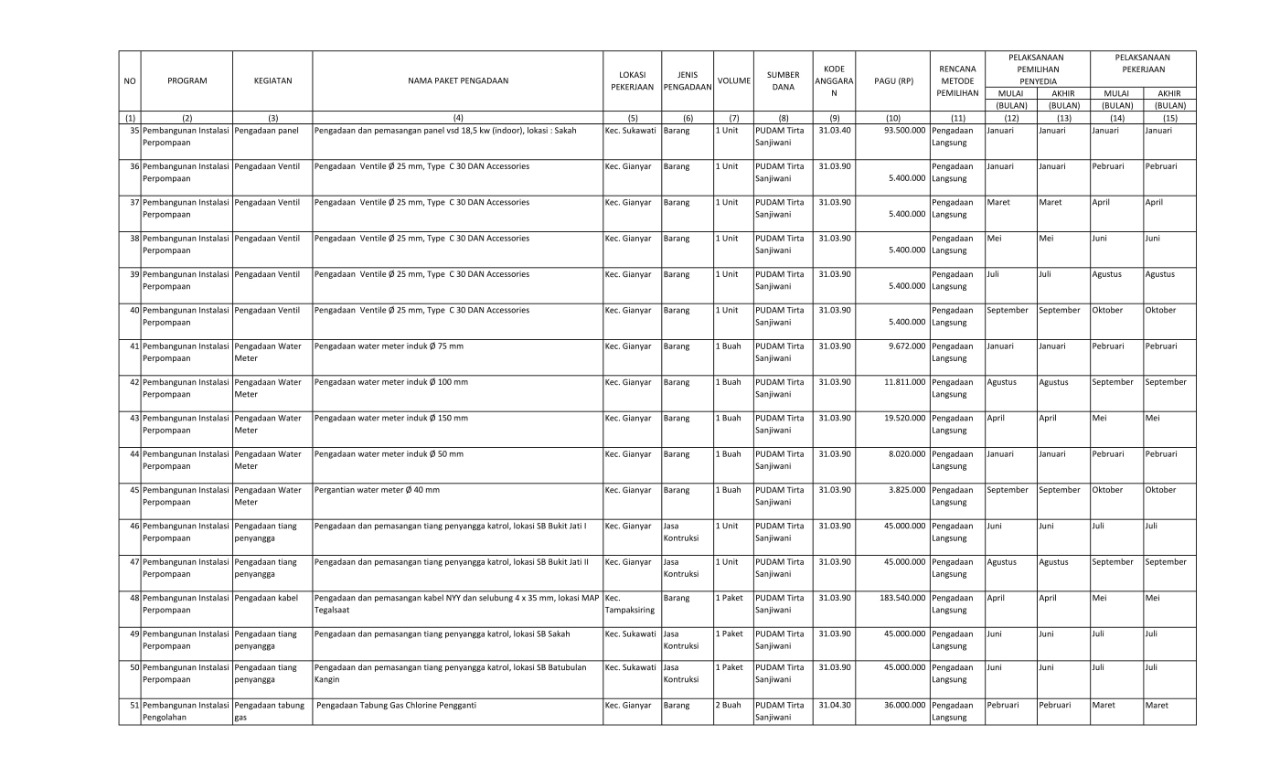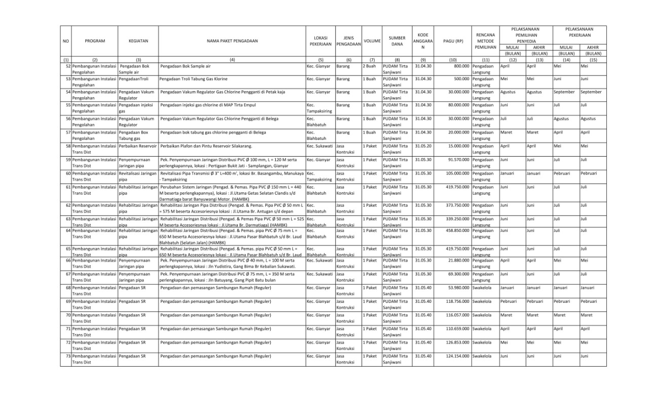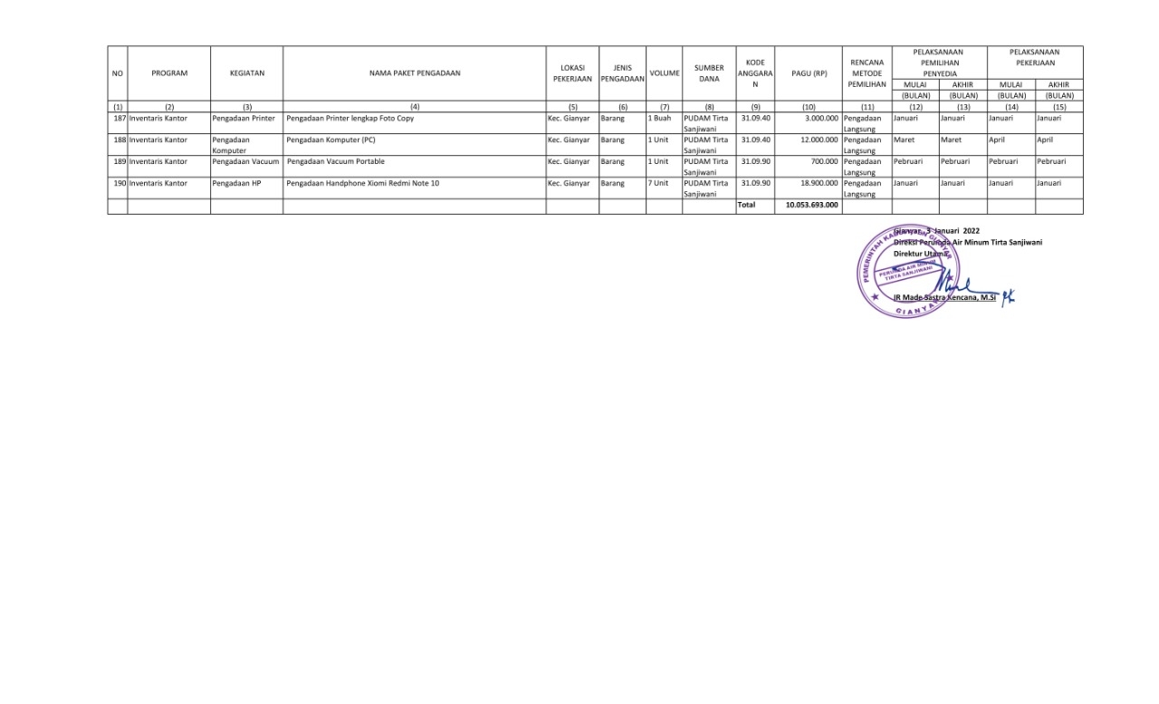 RENCANA UMUM PENGADAAN BARANG/JASA PERUMDA AIR MINUM TIRTA SANJIWANI KABUPATEN GIANYAR TAHUN ANGGARAN 2022