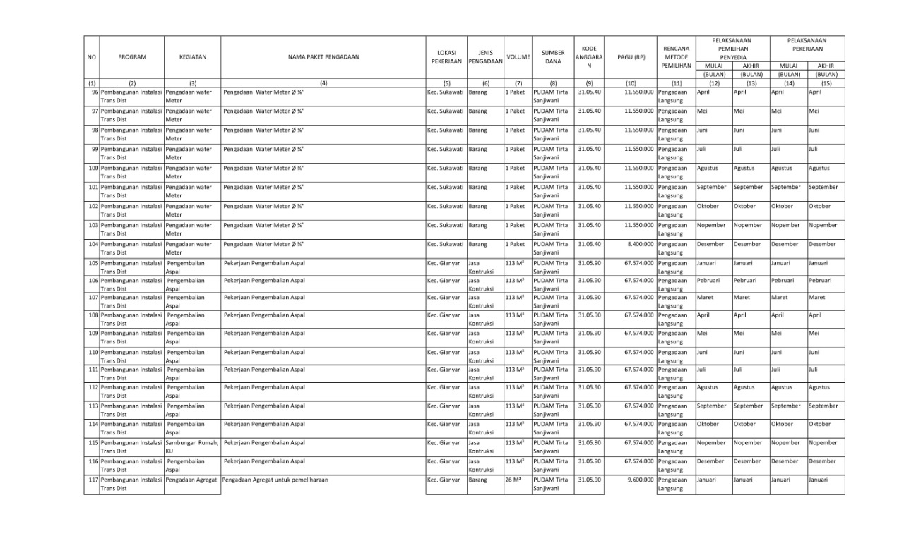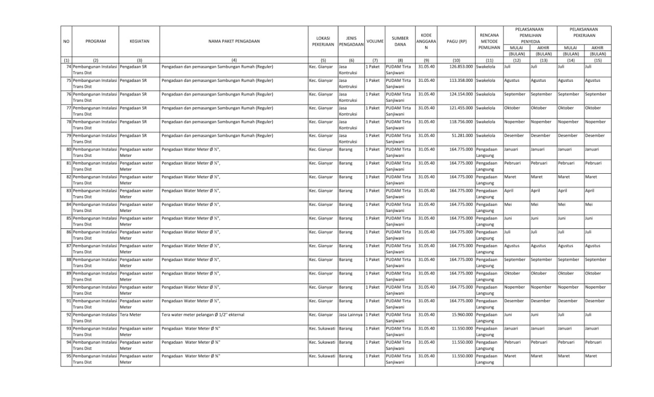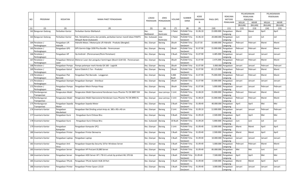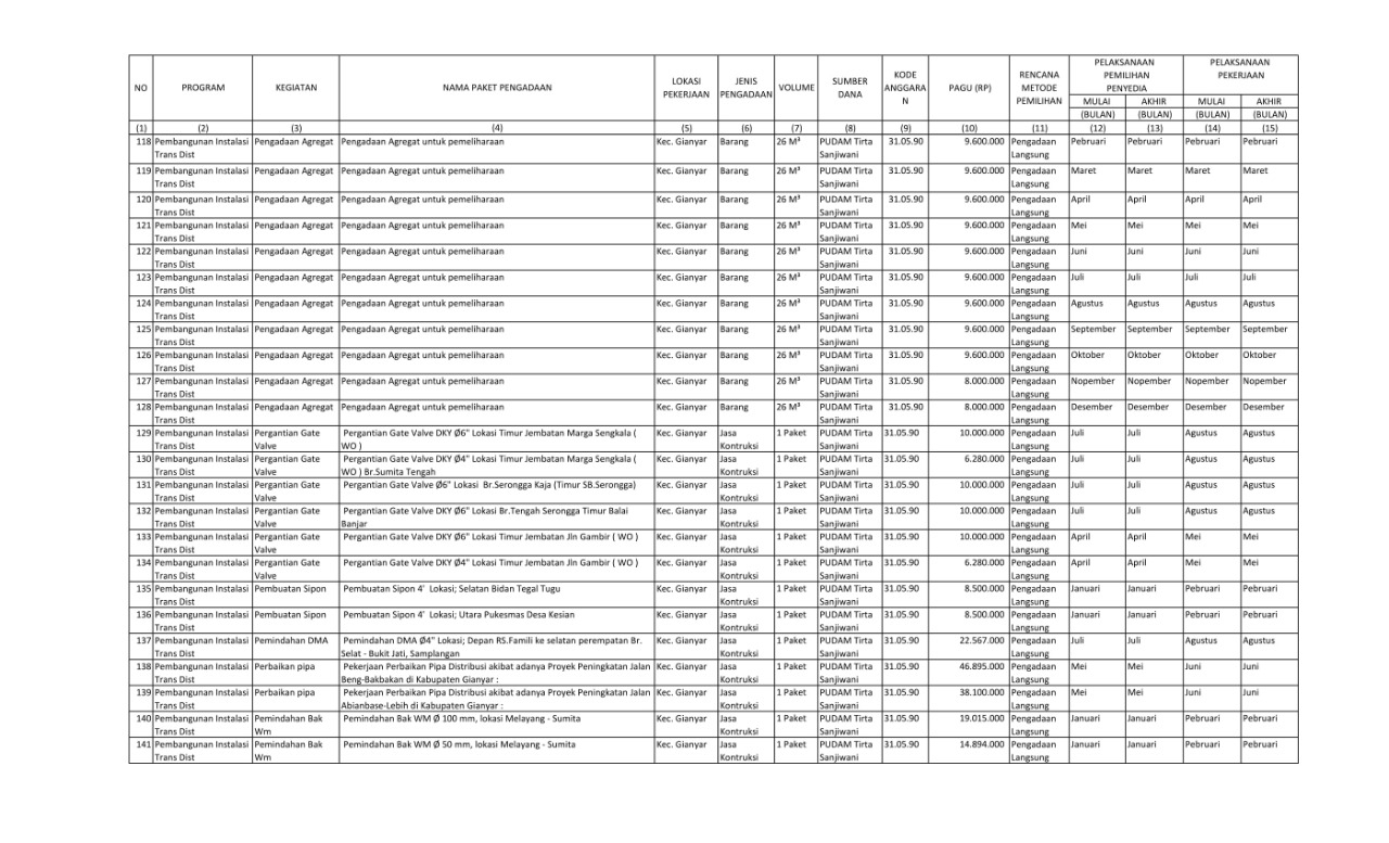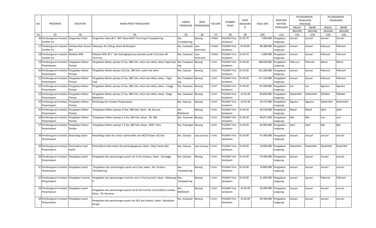 RENCANA UMUM PENGADAAN BARANG/JASA PERUMDA AIR MINUM TIRTA SANJIWANI KABUPATEN GIANYAR TAHUN ANGGARAN 2022